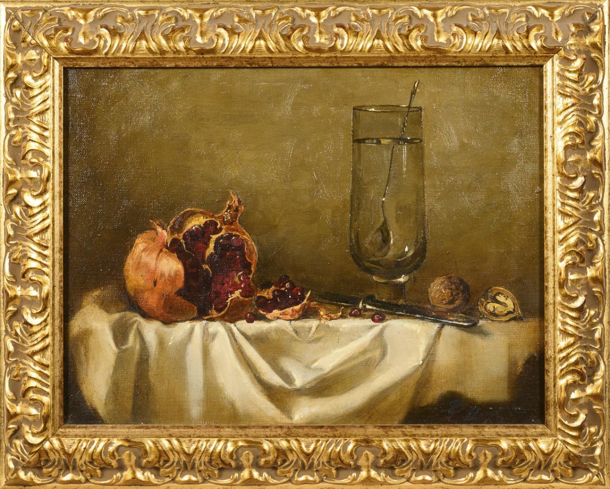 Russian painter: Still life with pomegranate