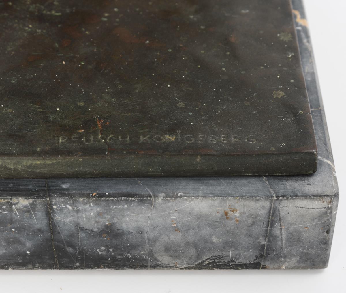 Black patinated copper galvanoplastic, dark marble plinth. Marked with the addition Königsberg. H 35.5 / 38.5 cm. 6 kg.