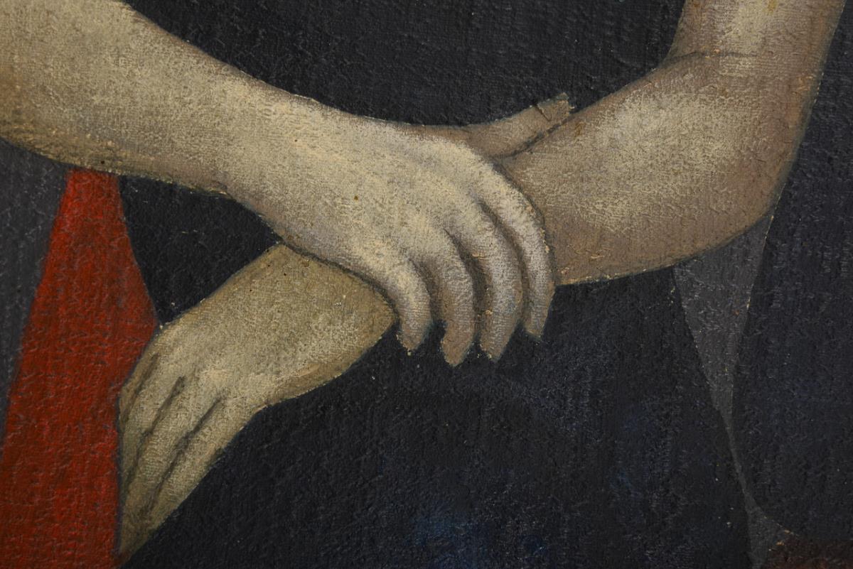 64 x 40 cm. Framed : 76 x 52 cm (slightly defective gilt stucco frame).