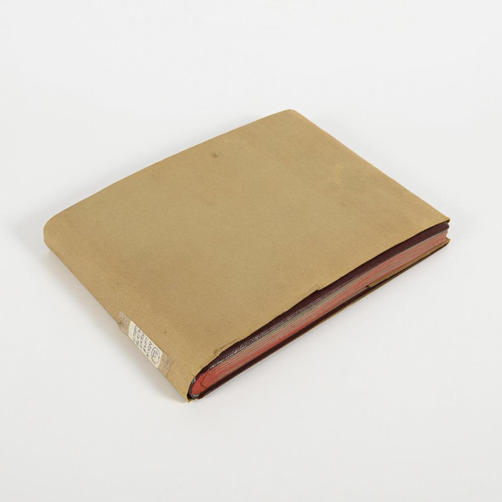 Red-brown leather cover with gold embossed lettering and red cut, wrapping paper dust jacket, 33 silver gelatine prints. 25 x 34 x 4 cm, photos mostly approx. 16 x 21 cm, some approx. 19 x 16 cm.
