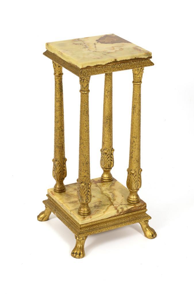 Stuccoed, gold-bronzed wood, yellowish-green marble. H approx. 65 cm, upper plate: approx. 25 x 25 cm.