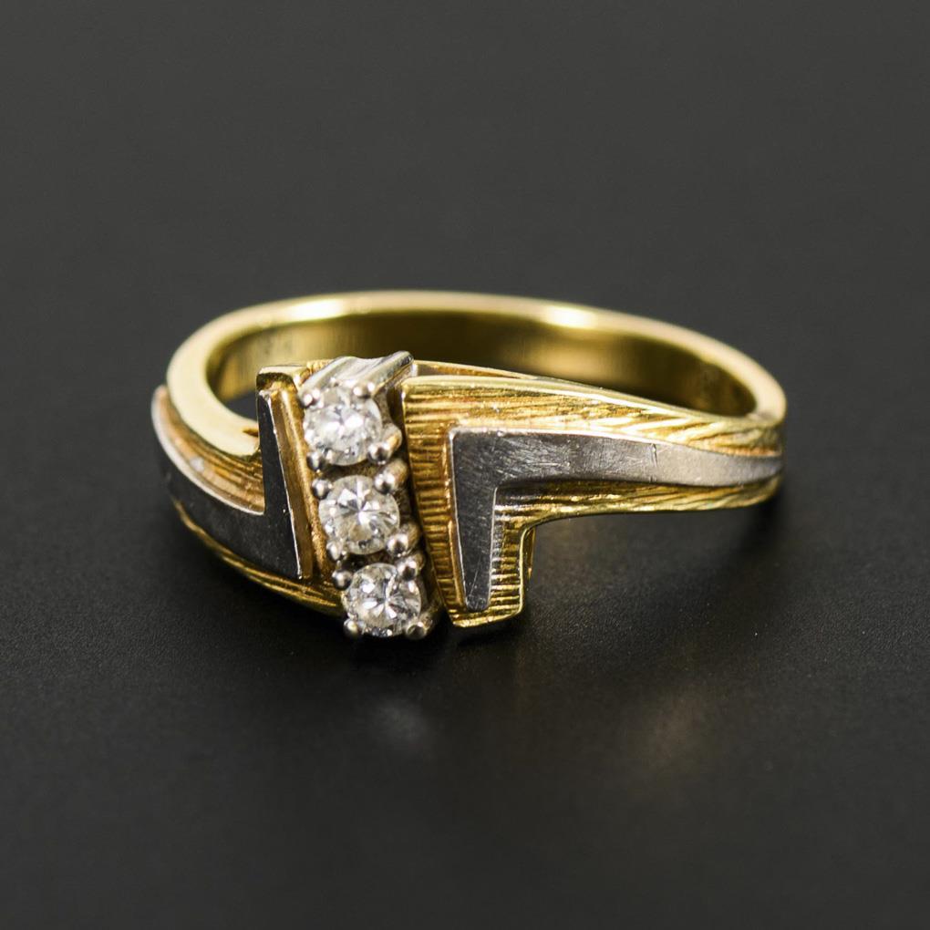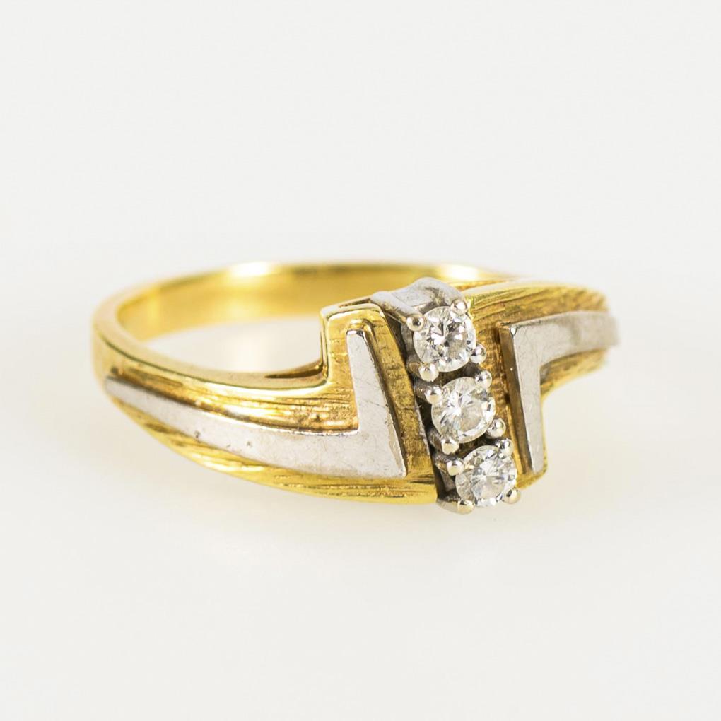 Marked yellow gold/white gold 585. Ring size 56. 4,5 g.
