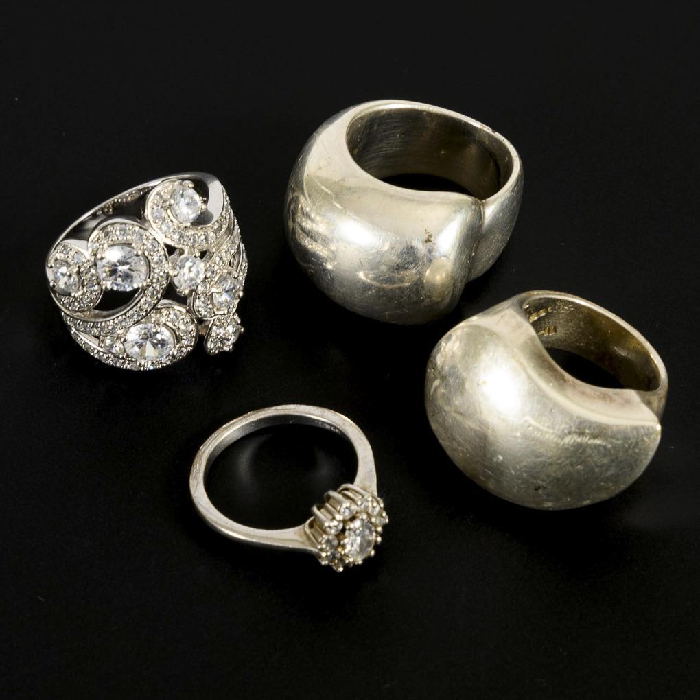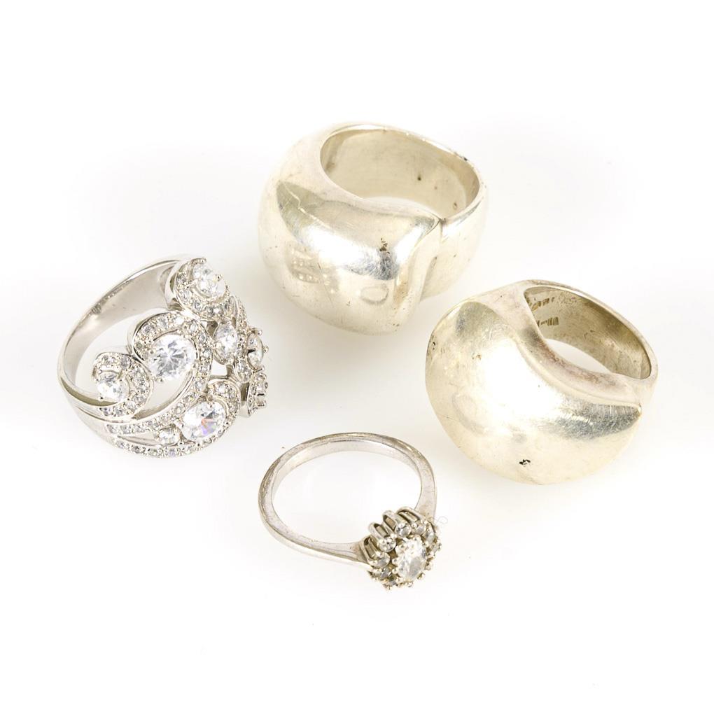 Silver tested. Silver 925 stamped. Ring sizes 56/54/60/55. 9.4/24.1/9.3/3.1 g.