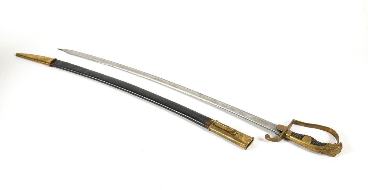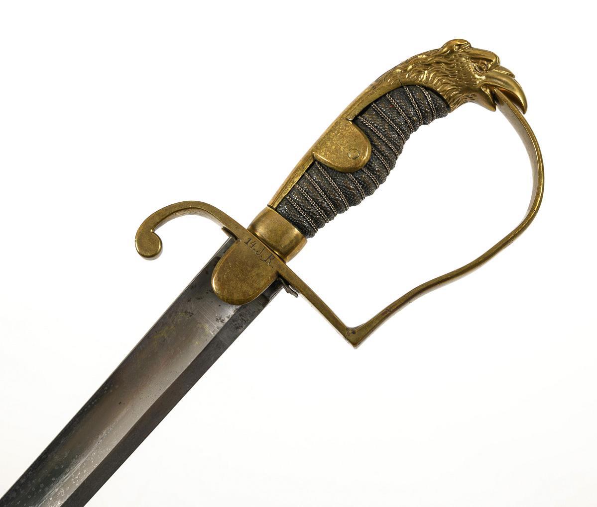Eagle's head sabre with leather scabbard, for fusilier officer.