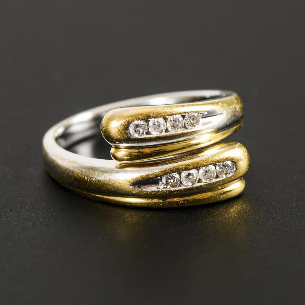 Modern, 2-tone ring with diamonds.