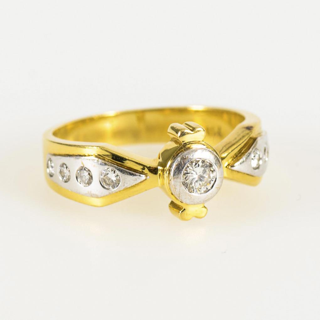 Marked 750 yellow gold/white gold. Diamonds in total approx. 0.40 ct/medium color and clarity grade. Ring size 55. 6.5 g.