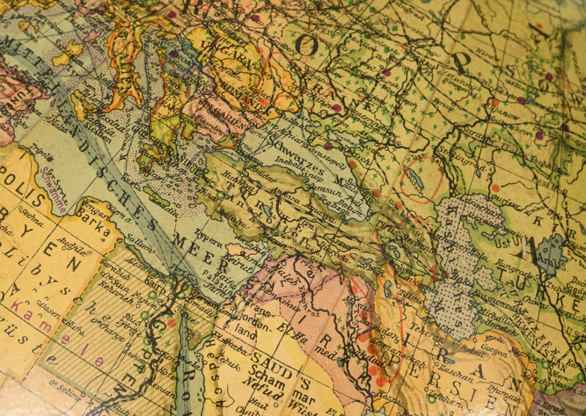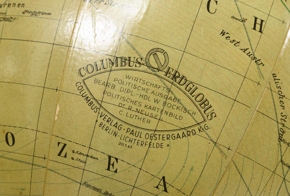 Globe on pedestal. Columbus Verlag Paul Oestergaard, Berlin-Lichterfelde.