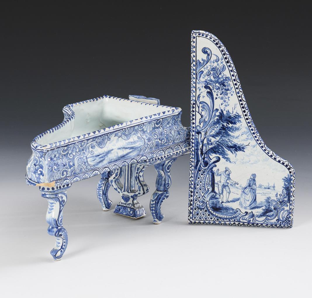 Light paste blue glaze, painted in cobalt blue. H 15.5 cm, L 28.5 cm.