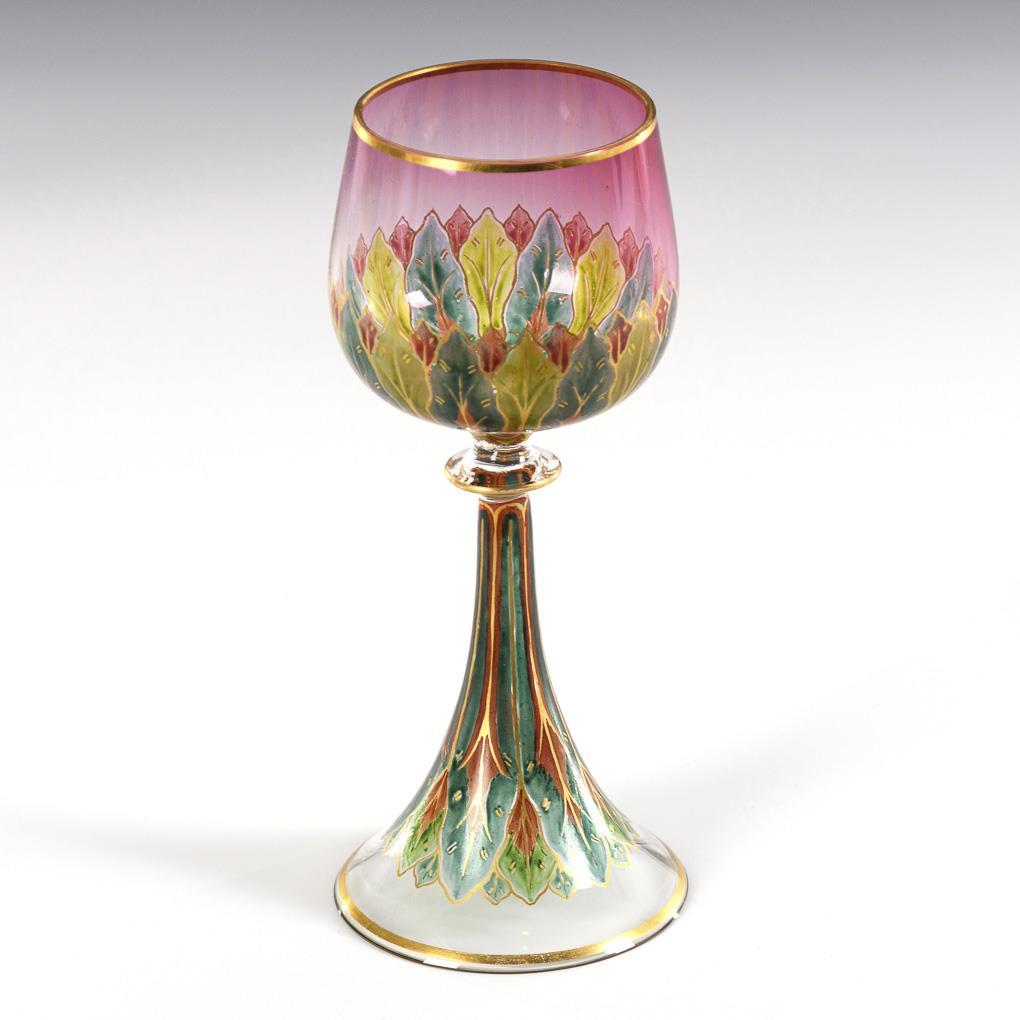 Wine glass with enamel painting. Meyr's nephew/Lobmeyr.