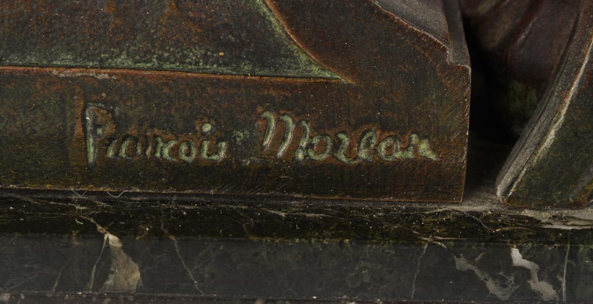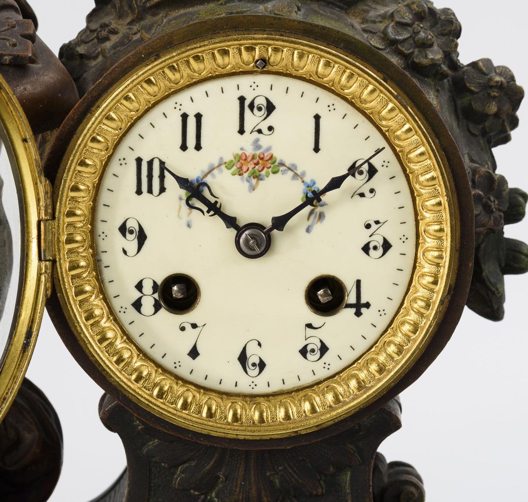 Art Nouveau mantel clock set "Mignon par F. Moreau".