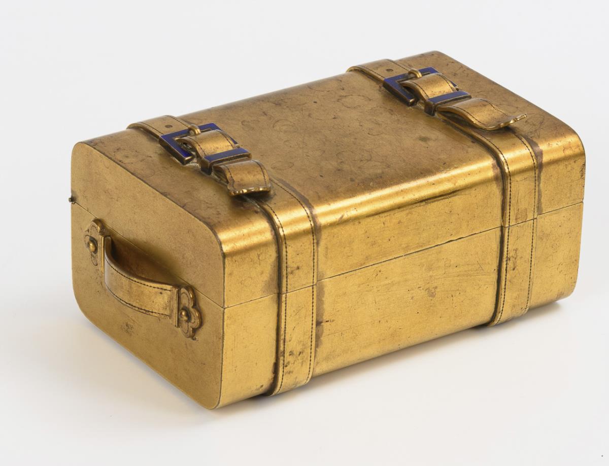 You are here:   Home Categories Clocks & Watches Rare writing utensil in the shape of a suitcase with a small pocket watch