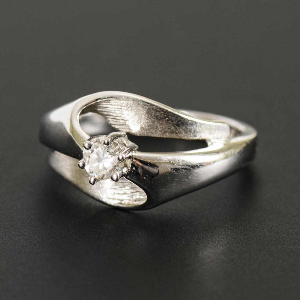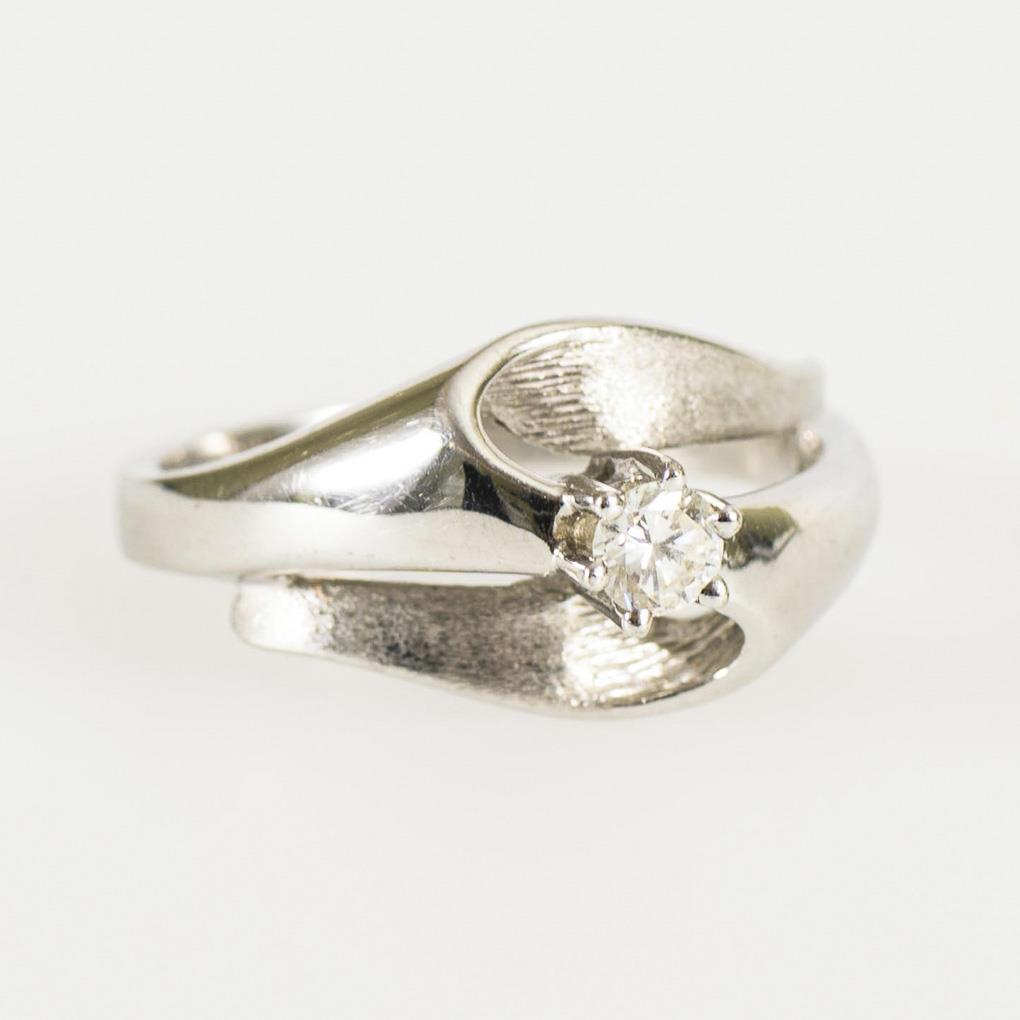 Stamped 750 white gold. Brilliant approx. 0.20 ct. Ring size 56. 5.7 g.