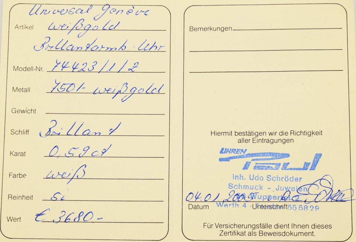 Ladies' wristwatch UNIVERSAL GENÈVE with diamonds, in original case.
