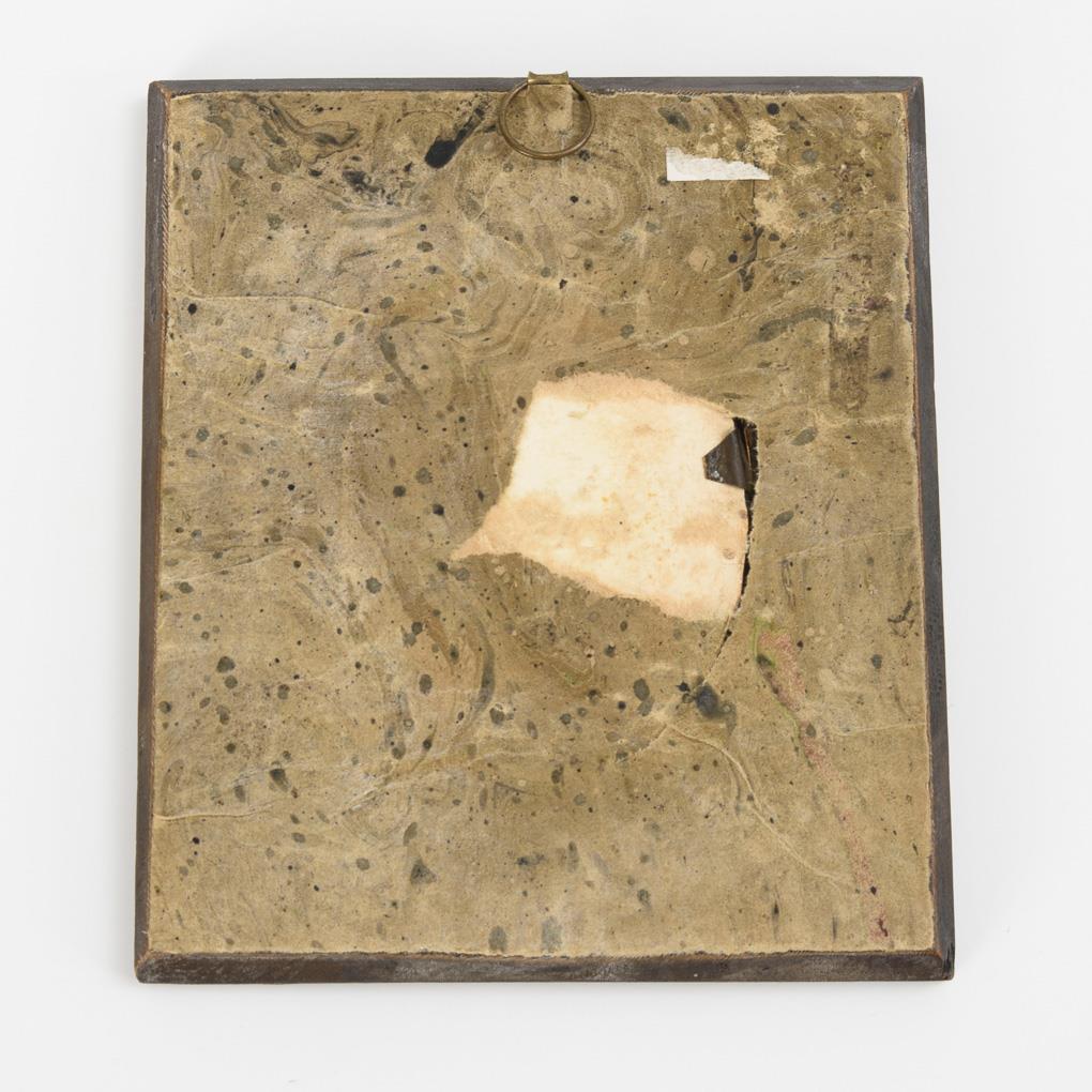 Tempera, glazed, brown wooden frame. 6 x 5 cm / 12 x 10 cm.