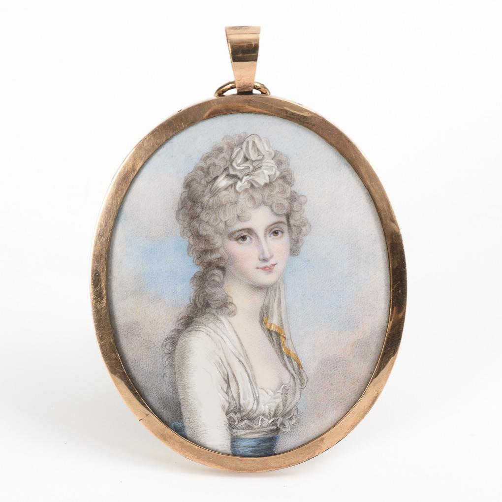 Empire miniature: Portrait of a lady in a gold frame.