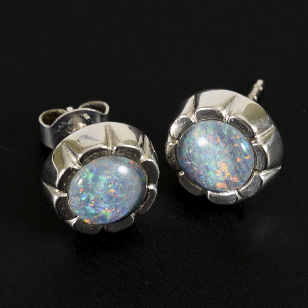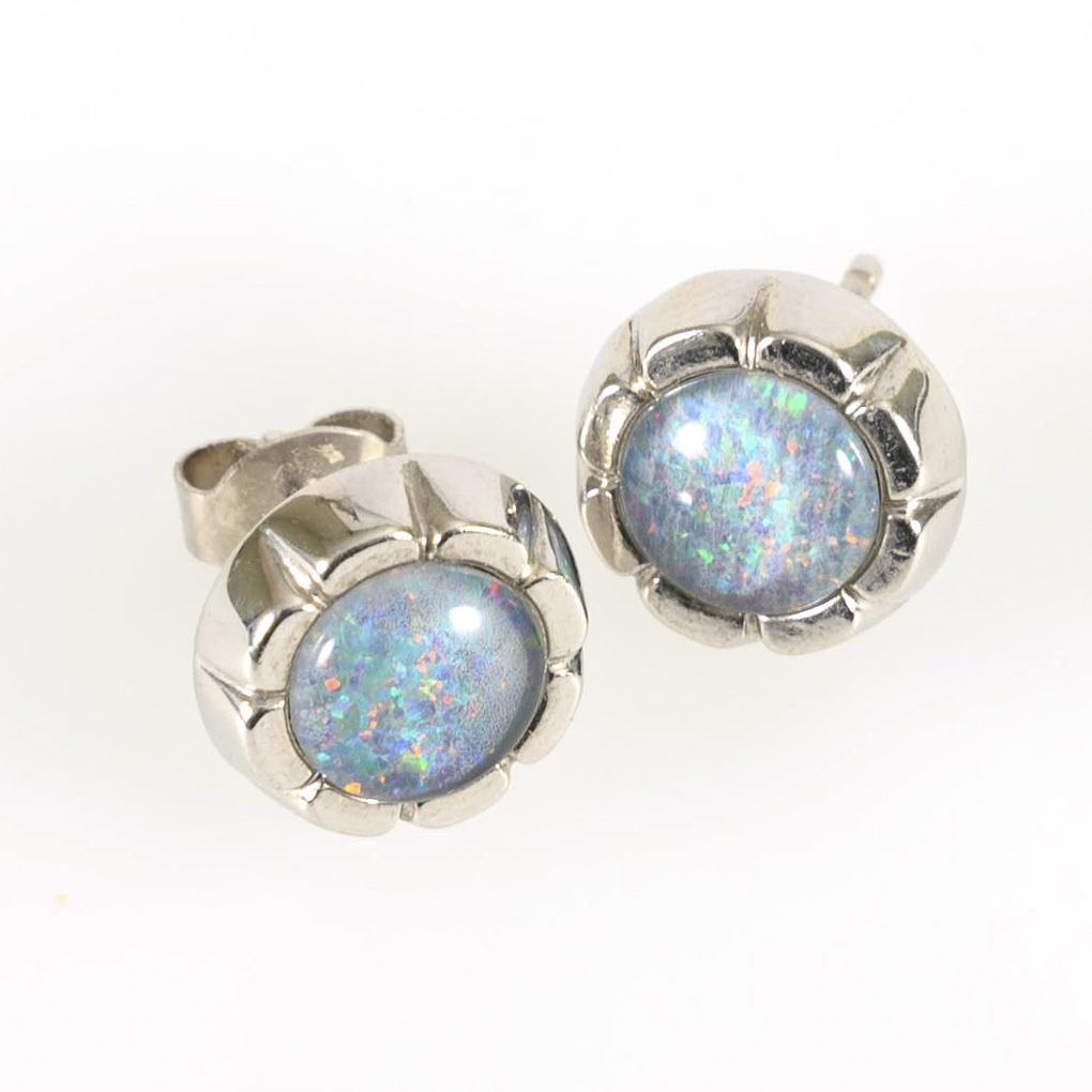 Pair of stud earrings with opal triplets.