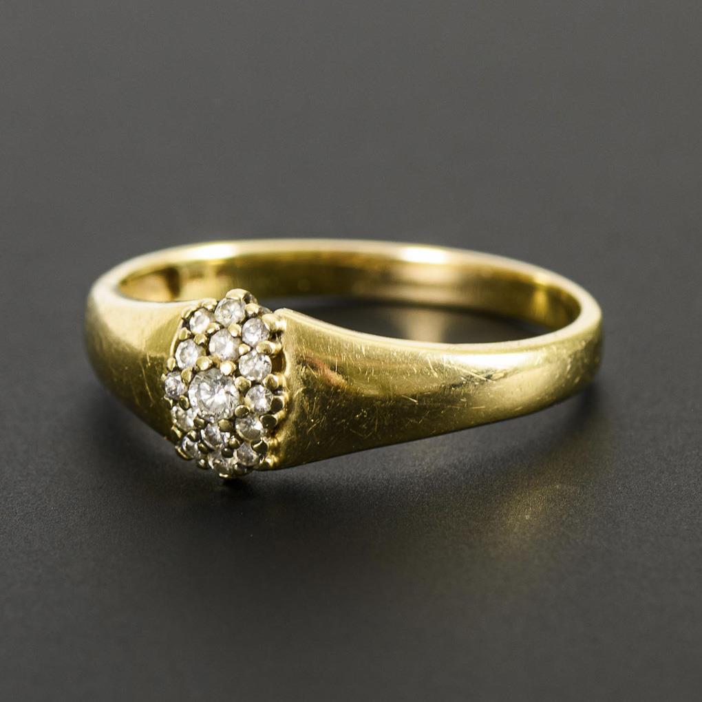 Marked yellow gold 585. Diamonds totaling 0.26 ct. Ring size 67. 3.3 g.