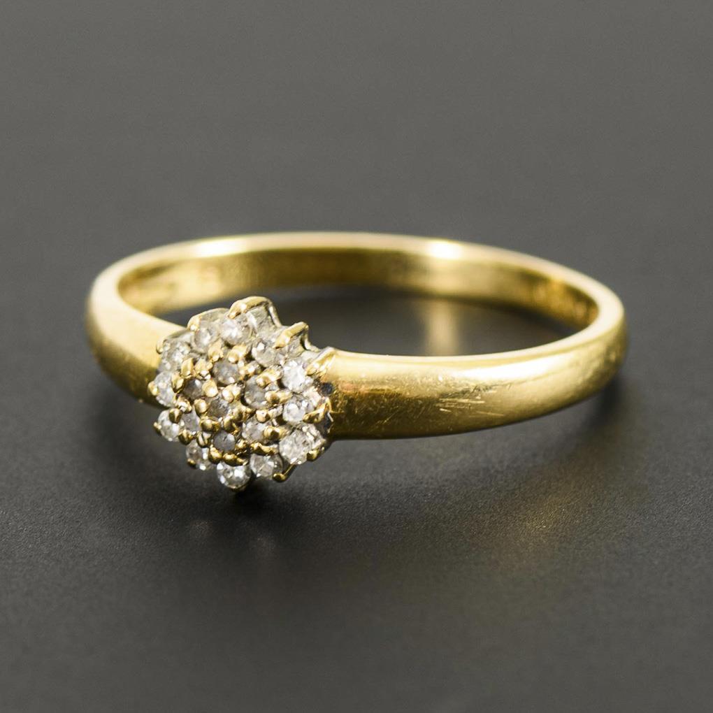 Marked yellow gold 585. Diamonds totaling 0.20 ct. Ring size 61. 2.7 g.