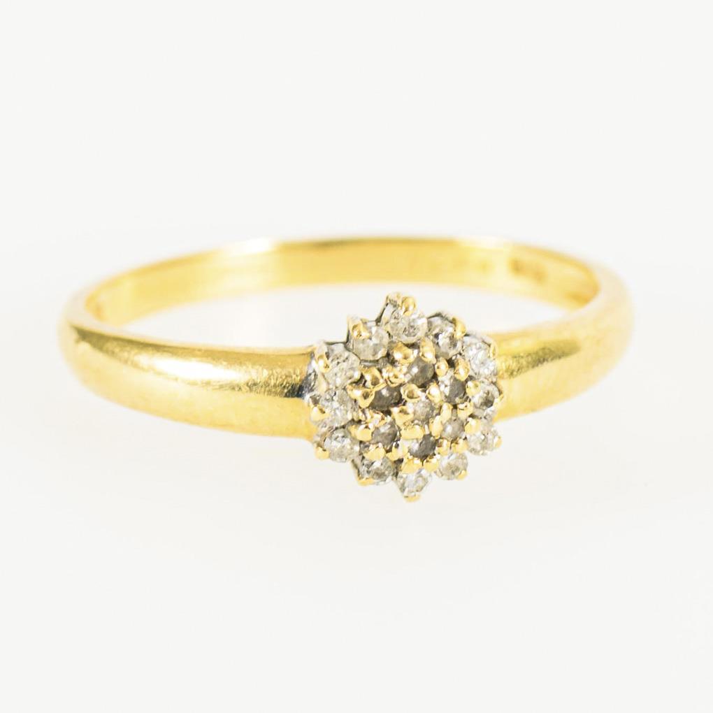 Marked yellow gold 585. Diamonds totaling 0.20 ct. Ring size 61. 2.7 g.