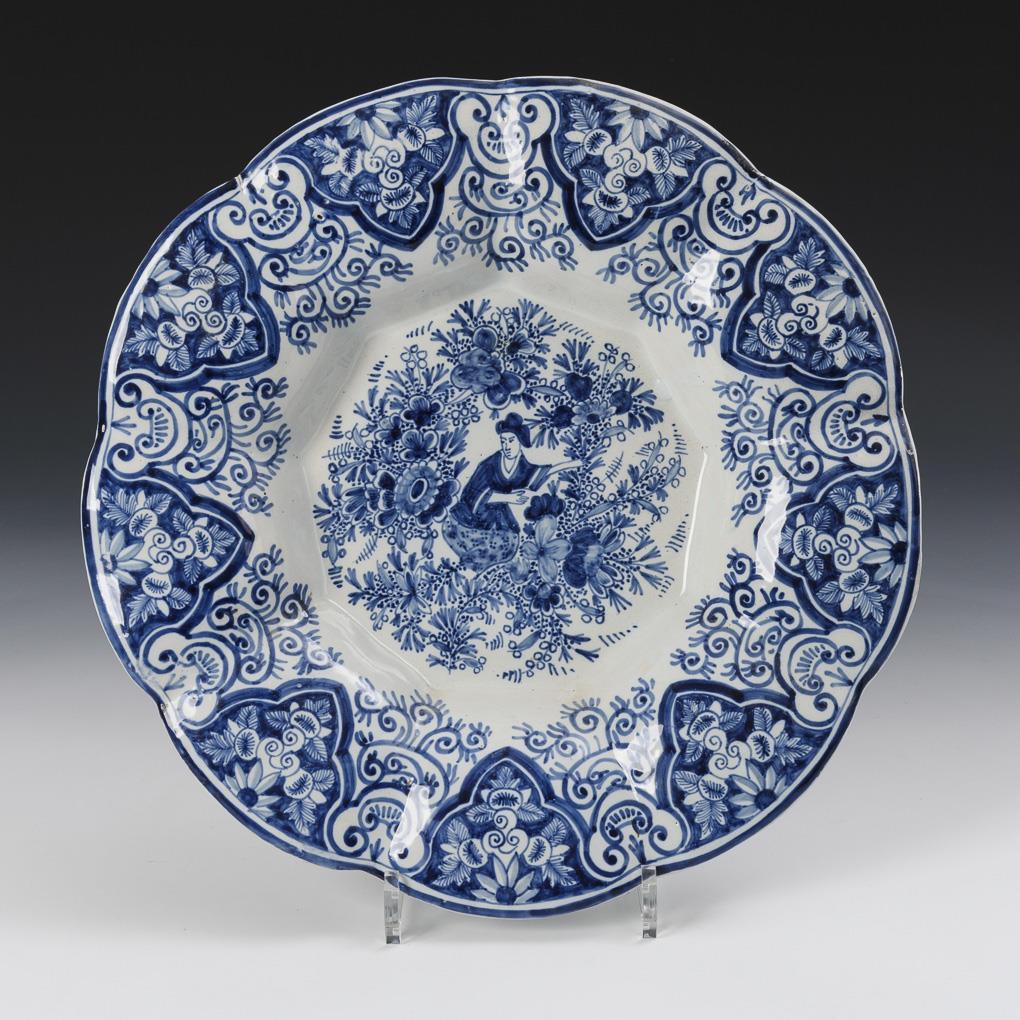 Baroque Delft faience hump plate with chinoiserie. De Porceleyne Schotel.