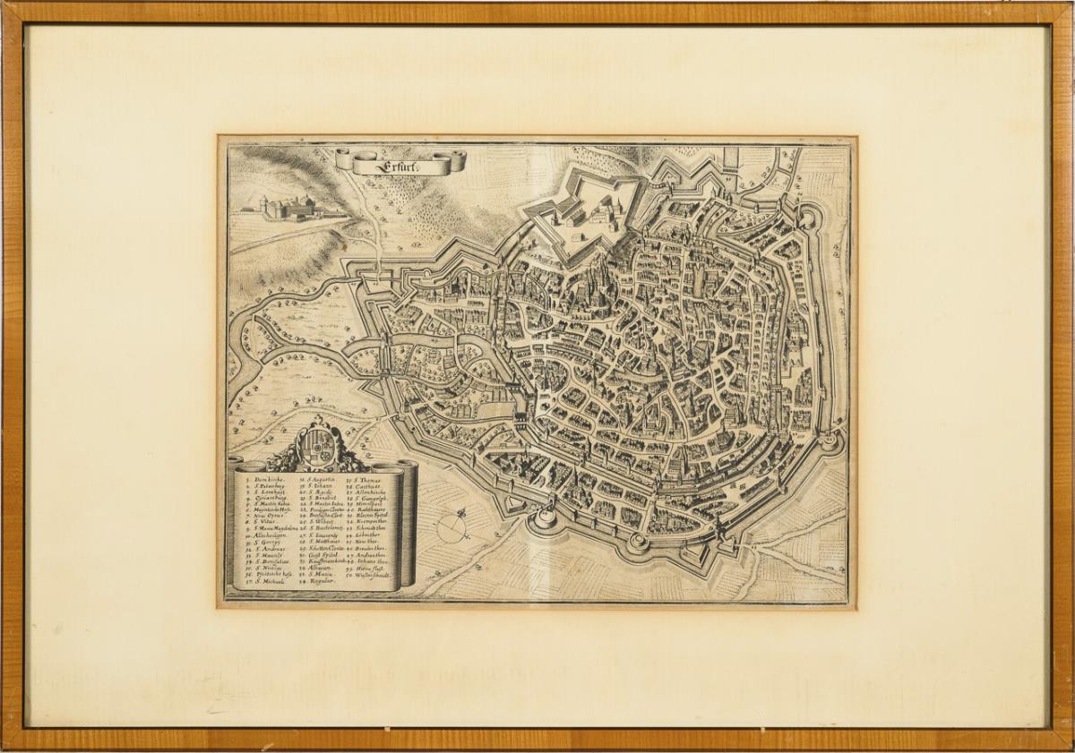 Historical plan of the city of Erfurt, titled "Erfurt"; from volume 12 of the "Topographia Germaniae" (Topography of Saxony and Thuringia), 1650