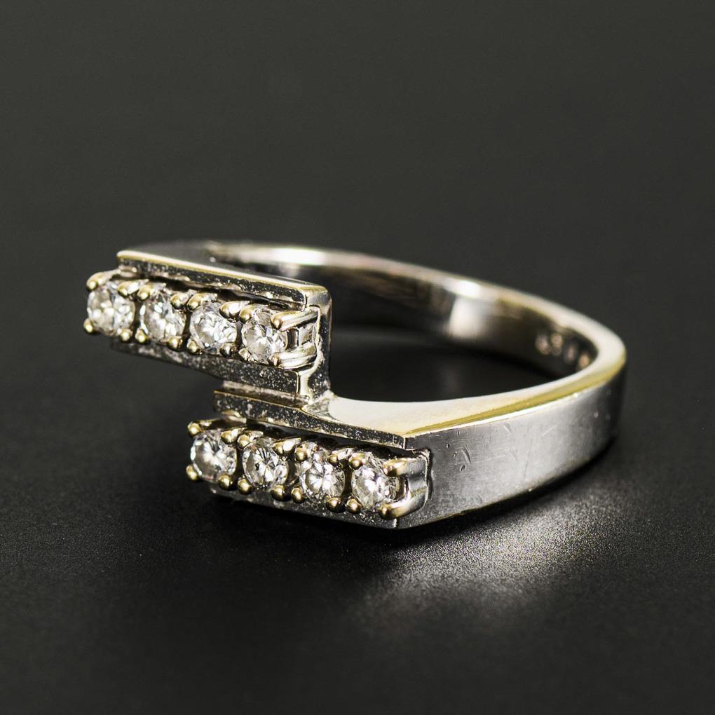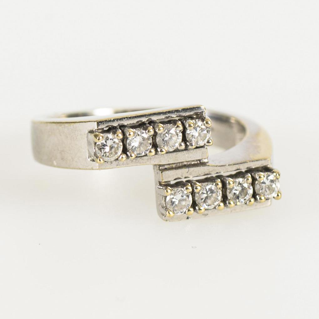 Stamped white gold 585. Stamped diamonds totaling 0.40 ct. Ring size 54. 5.6 g.