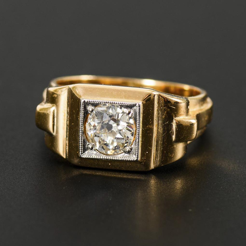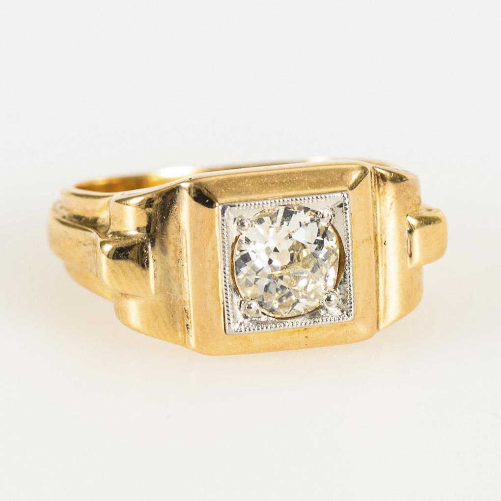 Marked yellow gold 585. Brilliant Ø approx. 6 mm/slightly tinted/si. Ring size 52. 6.3 g.