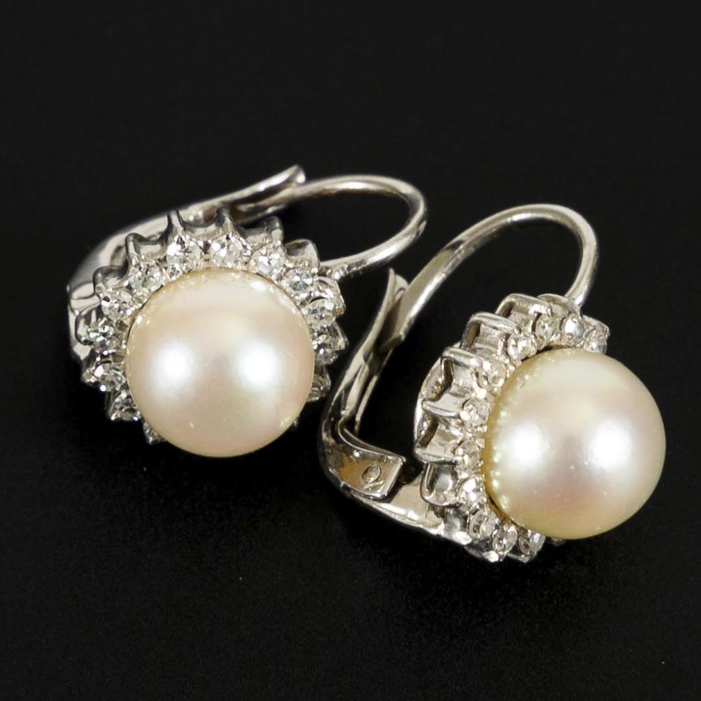 Pair of earrings with cultured pearls and diamonds.
