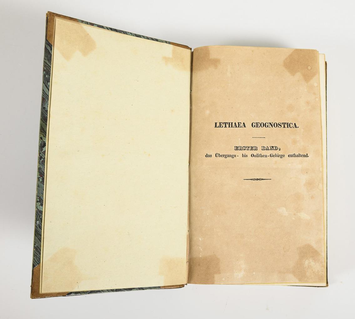 2nd editions, 2 volumes. "First volume containing the Transition to Oolite Mountains", "Second volume containing the Cretaceous and Molasse Mountains". Half-leather bindings with bluish marbling. Some foxing, some heavier browning. Without illustrations.