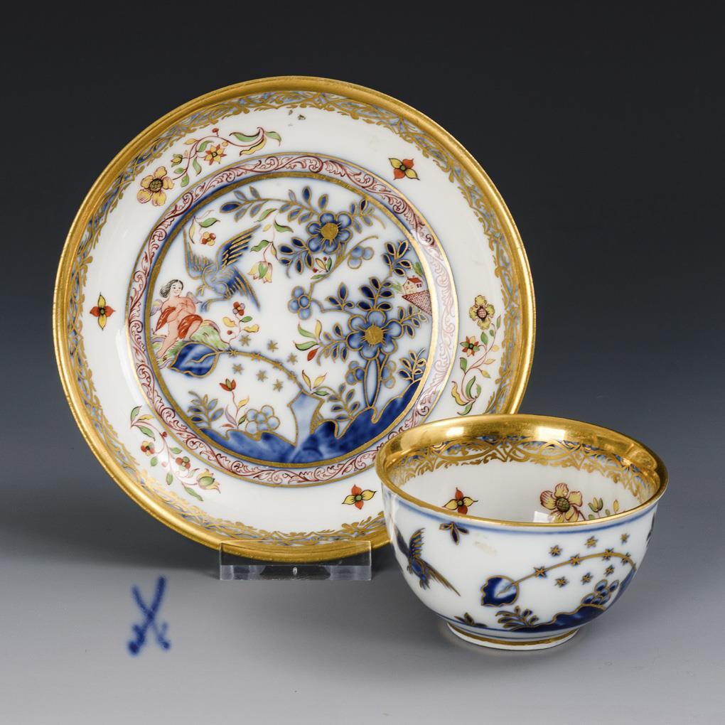 Cup with rock and bird painting. Meissen.