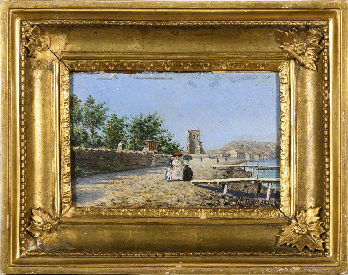 Russian painter: Sunny coast with staffage