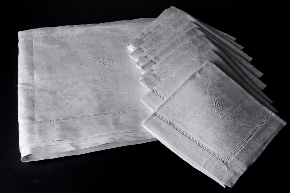 Art Nouveau tablecloth and 9 napkins circa 1910.