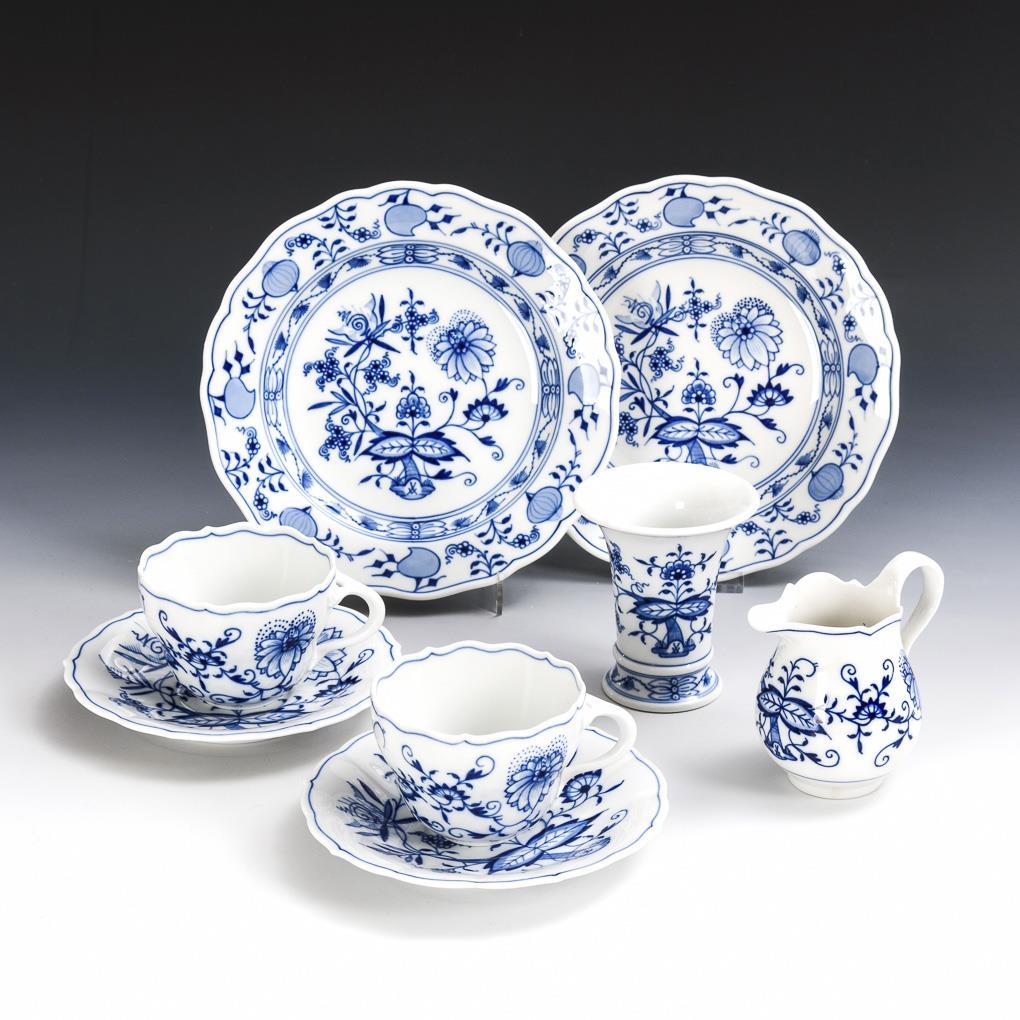 2 onion pattern coverlet, vase and milk jug. Meissen.