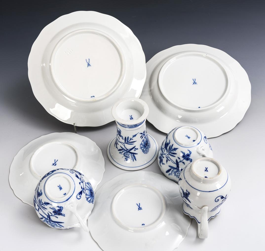 2 onion pattern coverlet, vase and milk jug. Meissen.