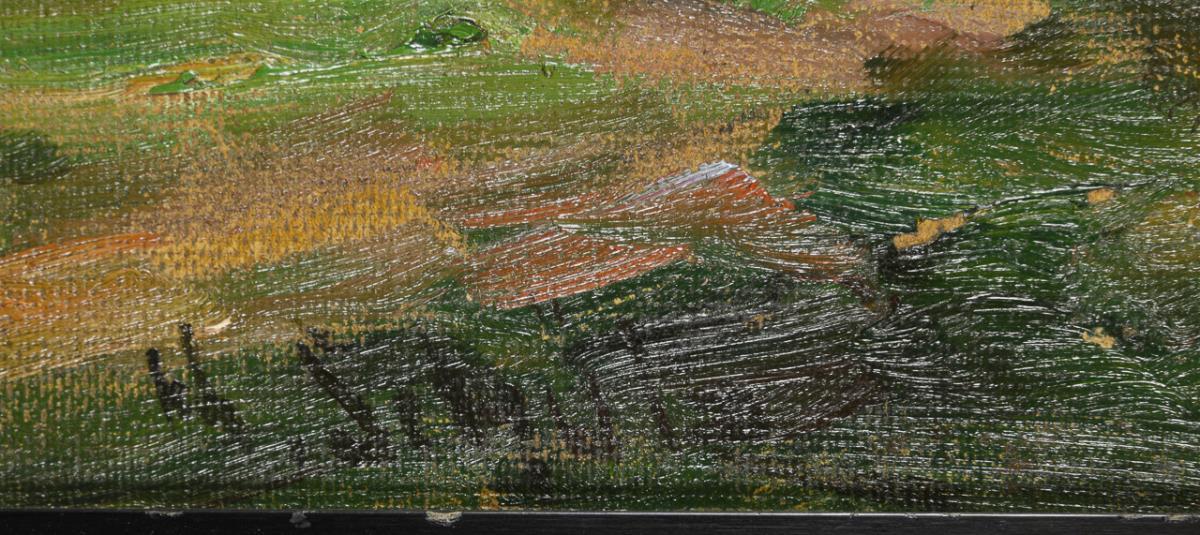 48 x 68 cm. Framed : 70 x 89.5 cm (gray gold stucco frame).