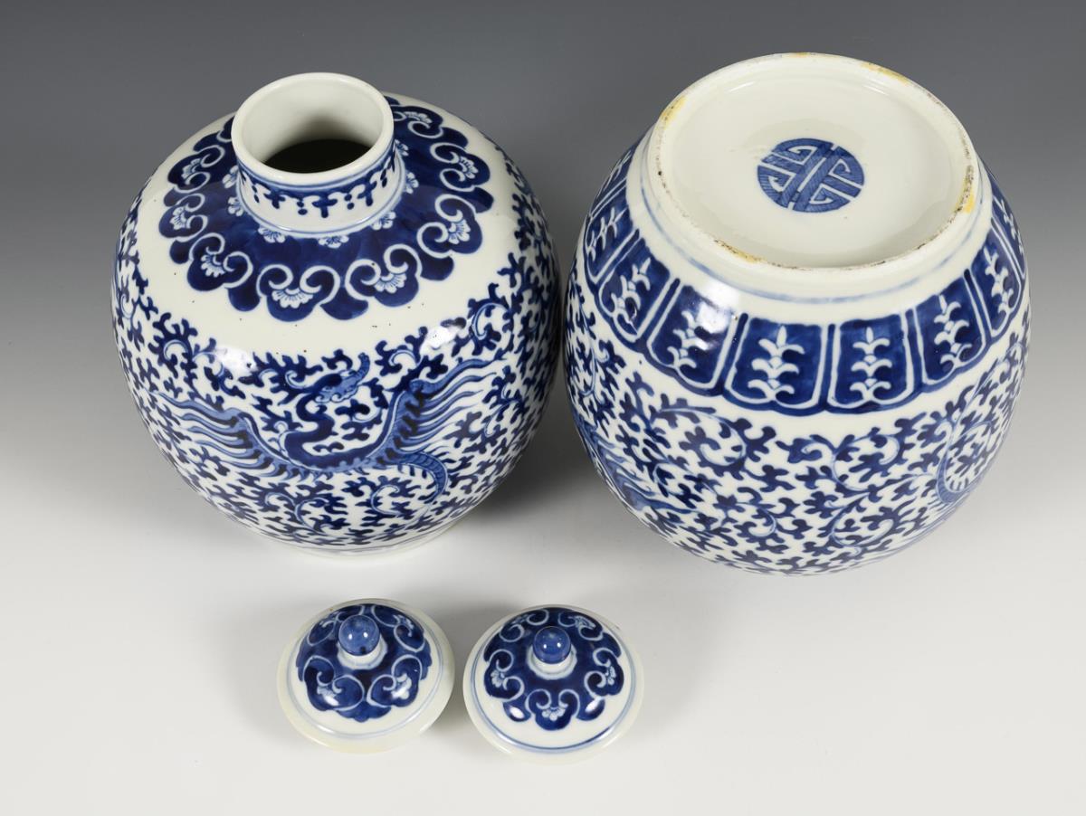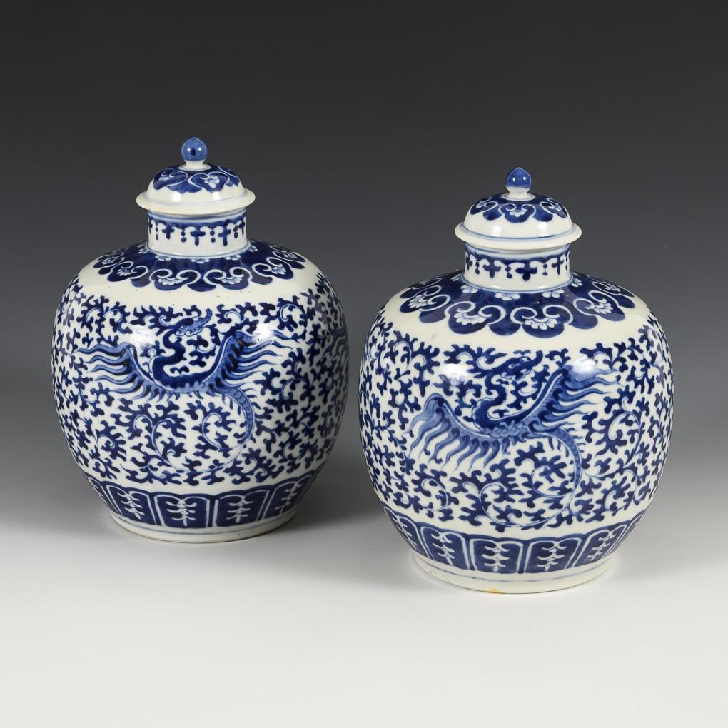Pair of lidded vases with underglaze blue painting.