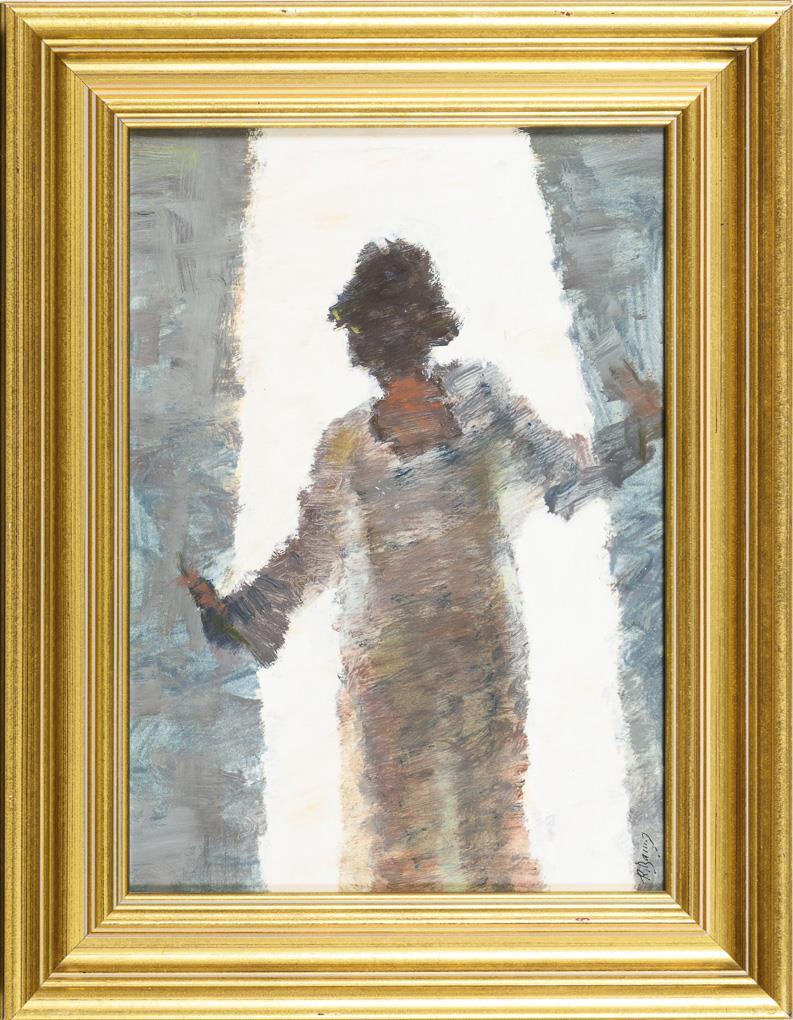 Distinctly signed: Woman at the window