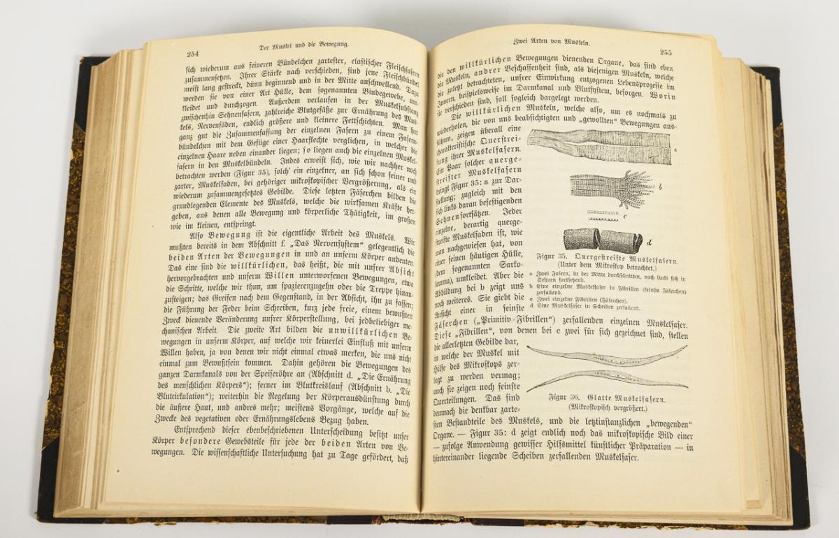 1 title copper, many illustrations in the text. Plus 12 plates with views of the factory and Rudolsbad by F. Ad. Richter & Cie Rudolstadt, Nuremberg and Vienna, manufacturer of Anker home remedies and Anker stone building sets. 628 pages. Brown half leather binding with gilt-stamped spine. The last 4 pages loosely attached, some signs of age/wear to the binding.