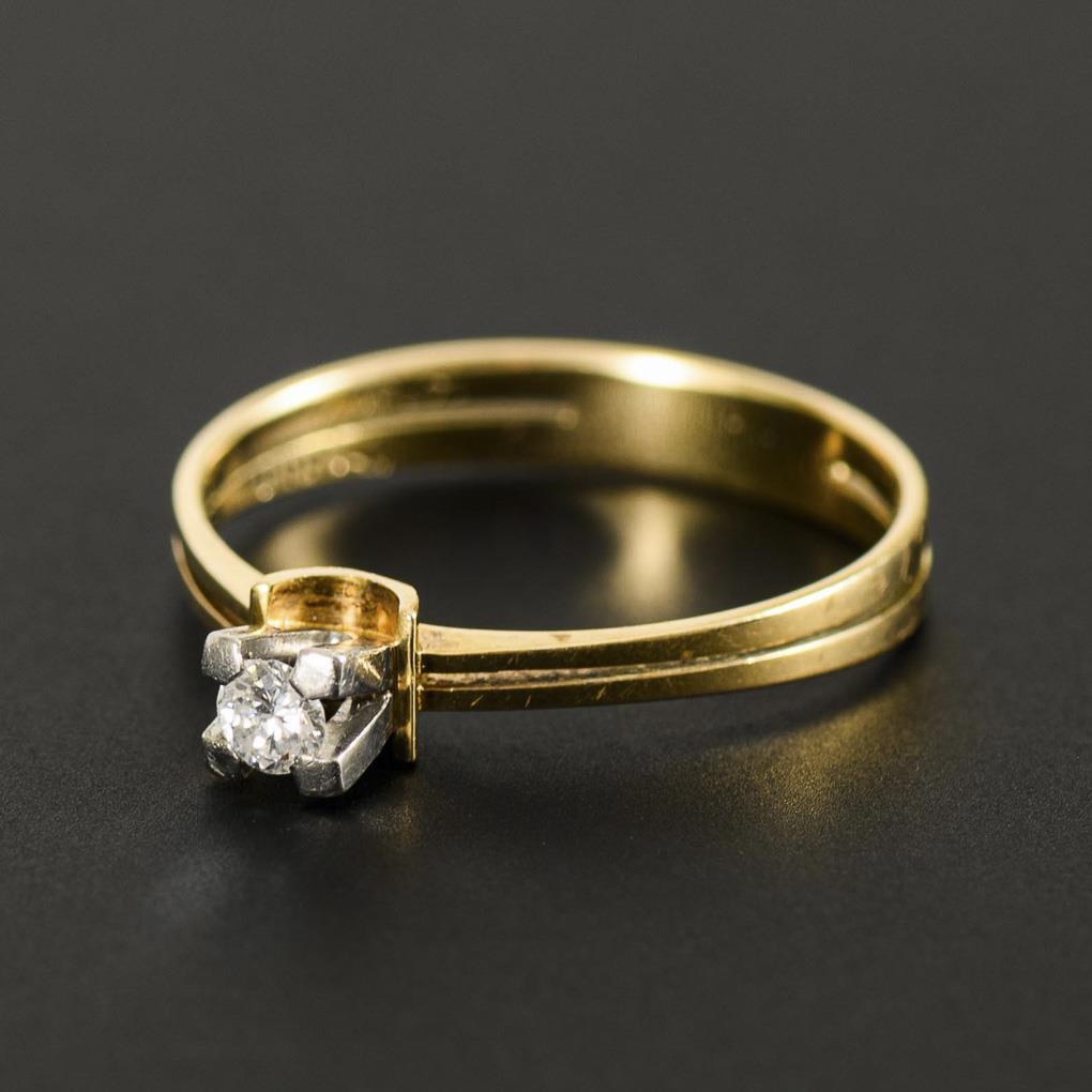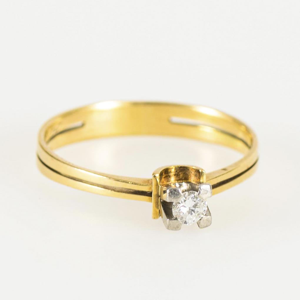 Marked yellow gold/white gold 585. Brilliant 0.13 ct stamped. Ring size 60. 2.6 g.