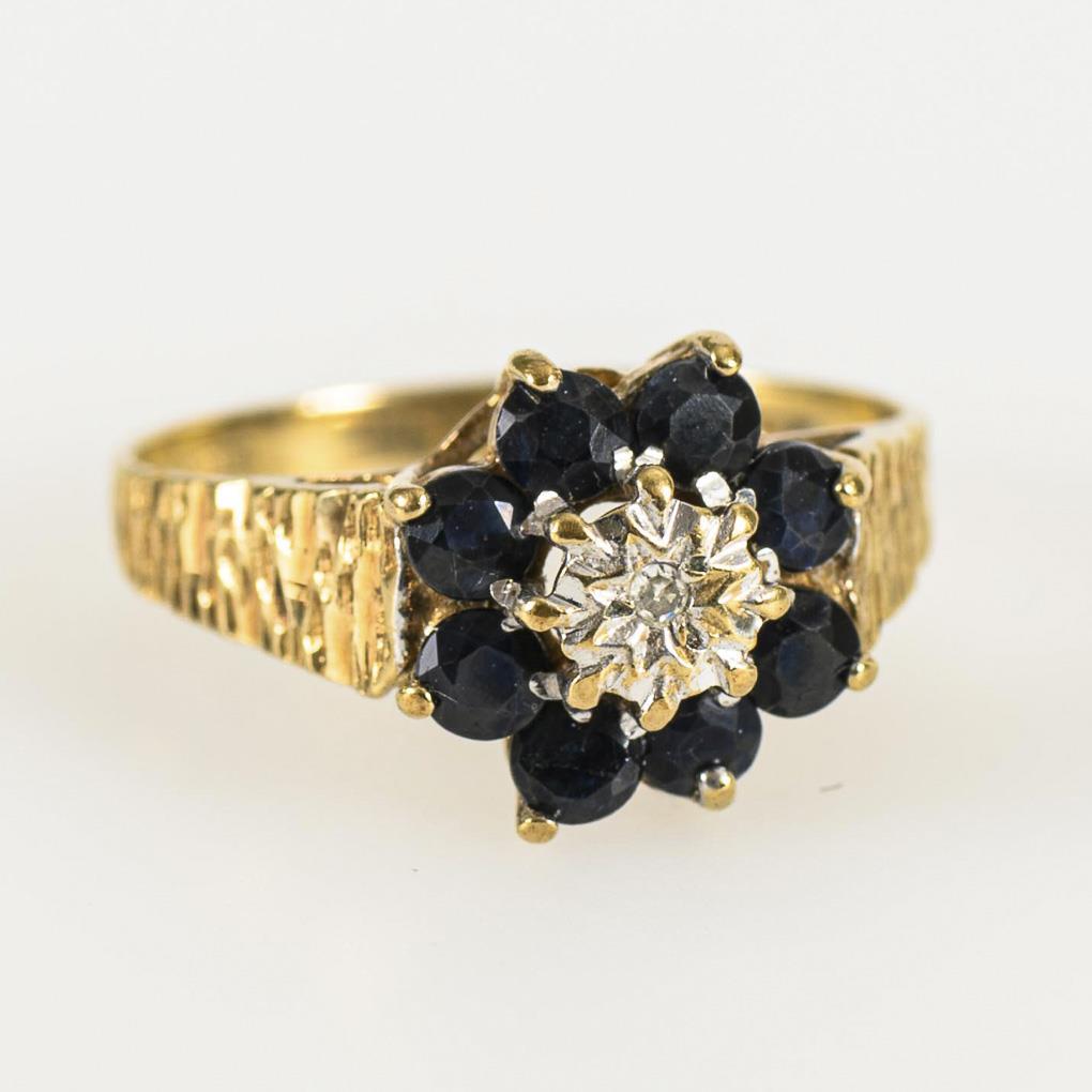 English ring with sapphires and diamond.