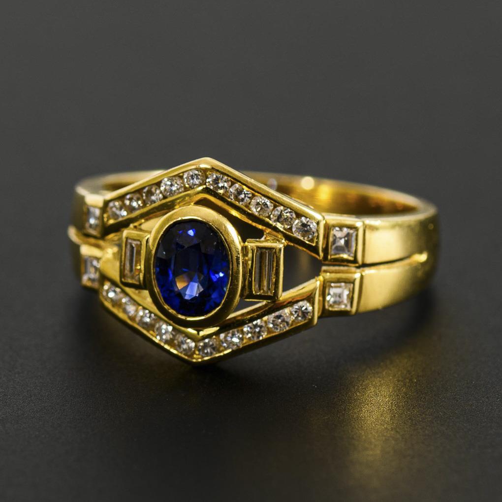 Ring with sapphire, brilliant-cut diamonds and diamonds.