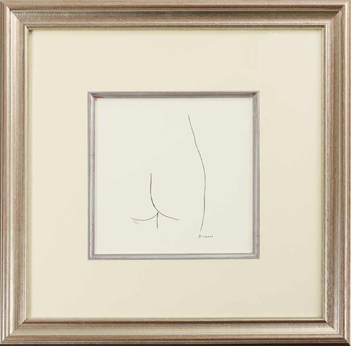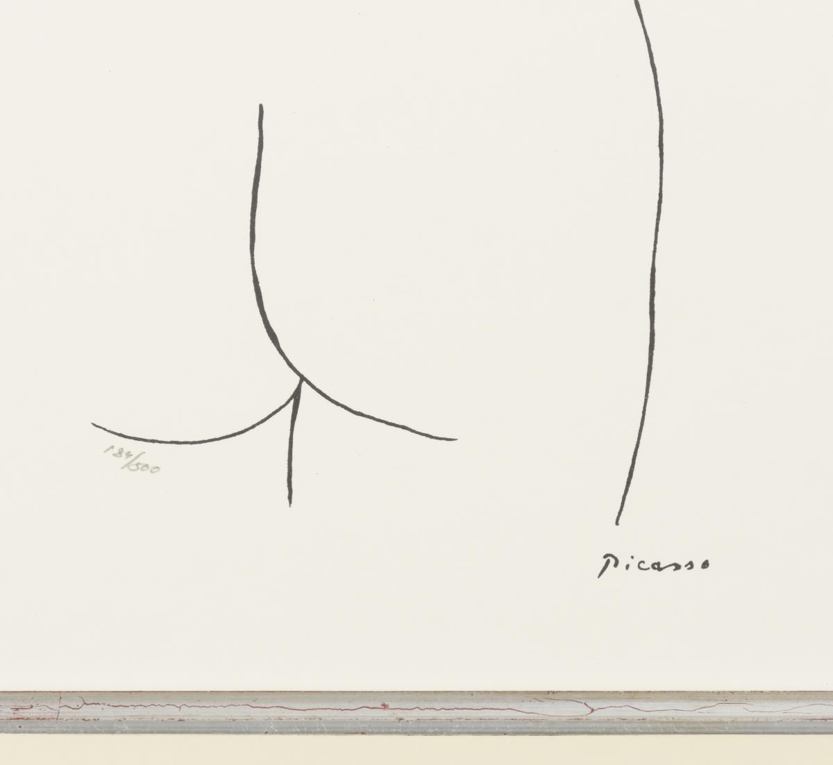 Auf ein Minimum reduzierte Körperpartien, mit Bleistift nummeriert; Po: 184/500, weibliche Scham: 230/500, Gesicht: 102/500.