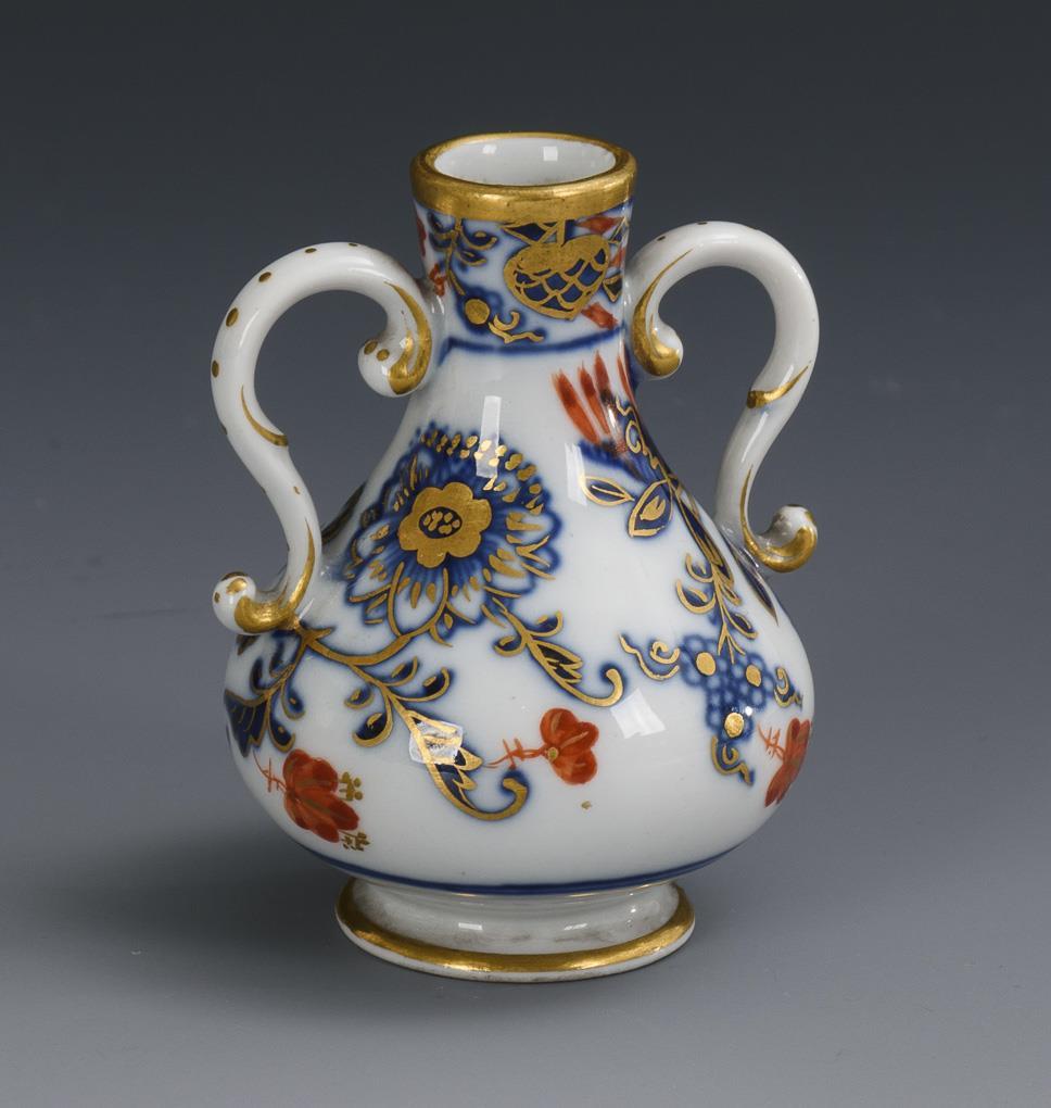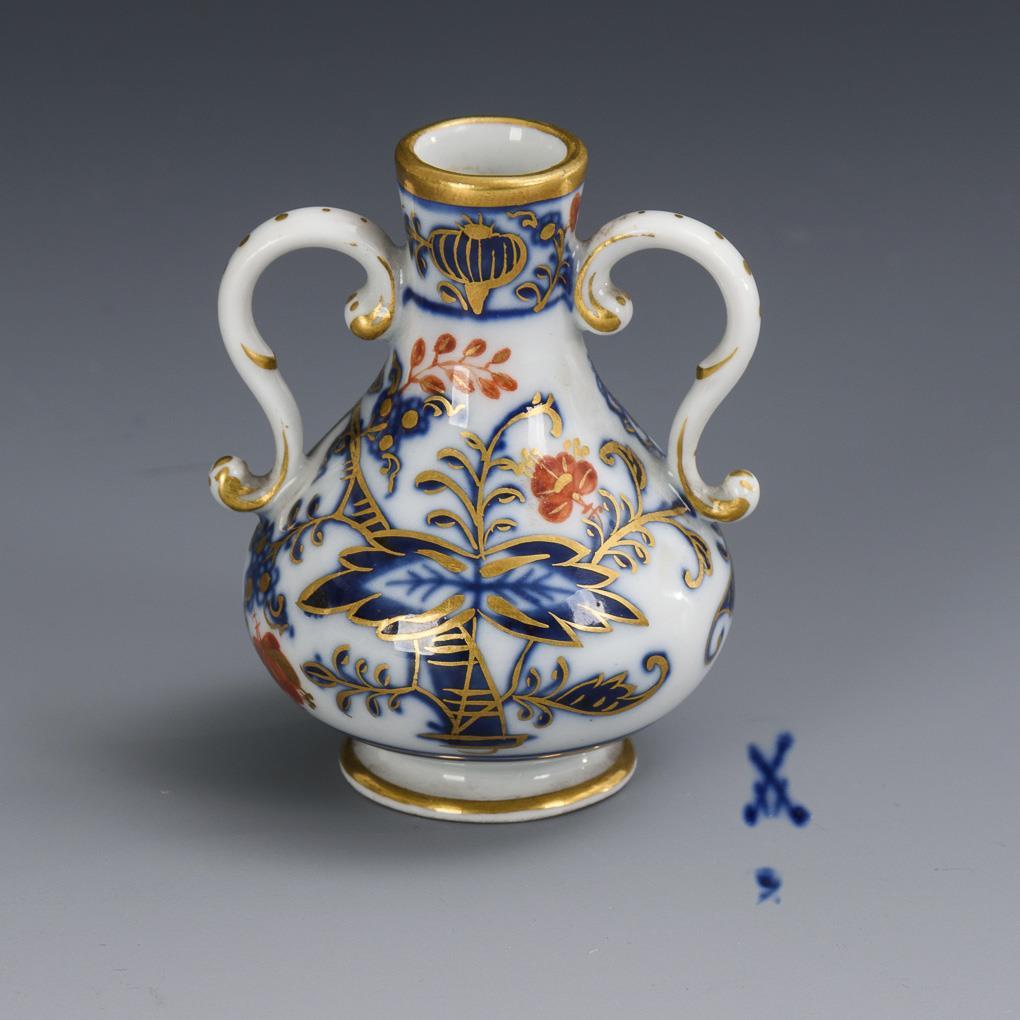 Unglazed blue painting, polychrome overglaze painting, gold decoration. H 6 cm.