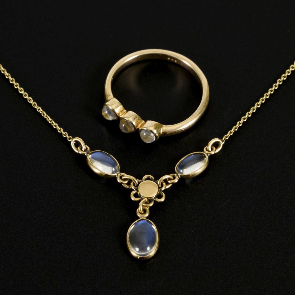 Collier and ring with moonstones.