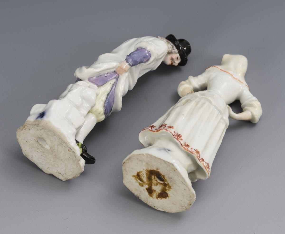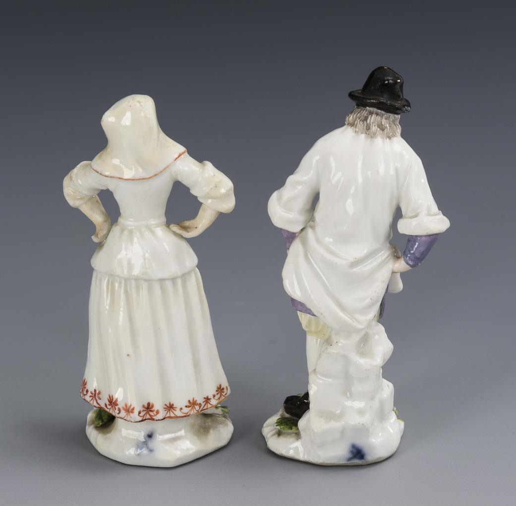 Dutch peasant woman and Dutch peasant. Partially chipped leaves and flowers, left hand of the peasant woman chipped.