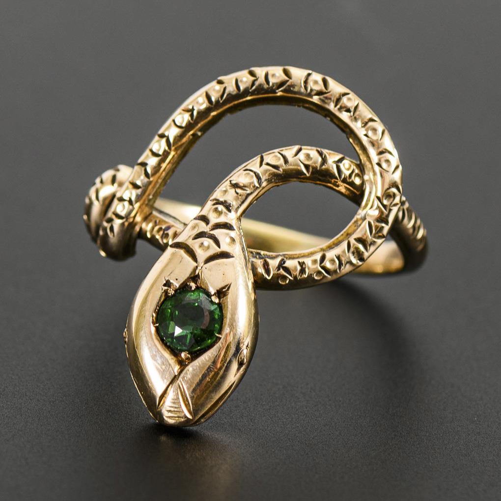Snake ring with colored stone.