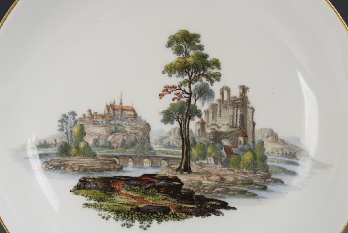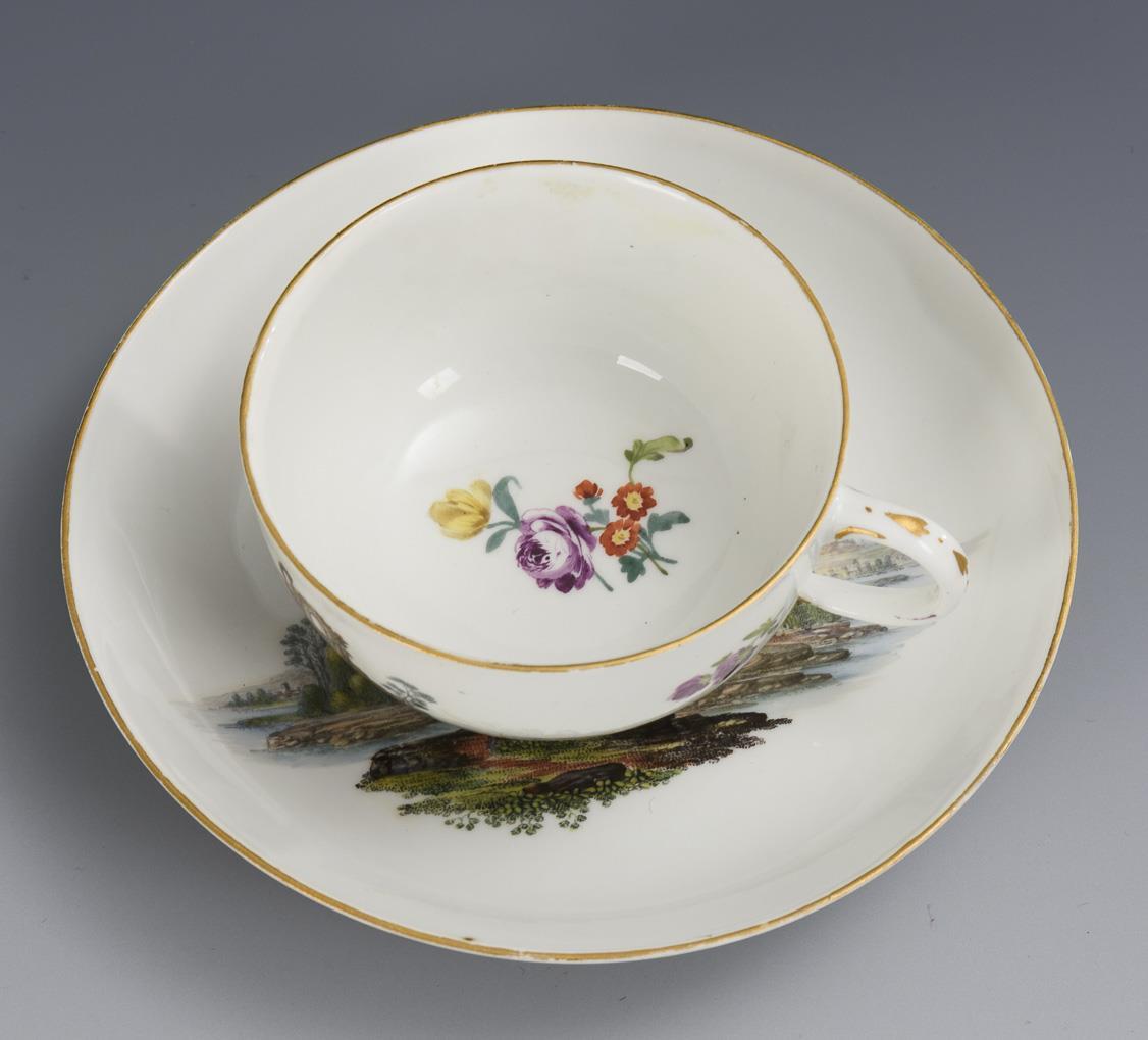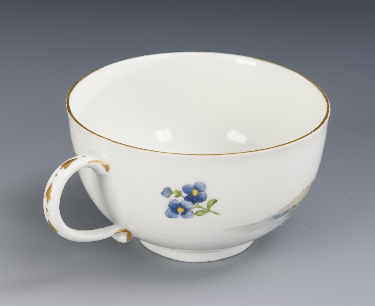 Polychrome painted, gilt. Cup (h 4.5 cm), original saucer (Ø 13.5 cm).