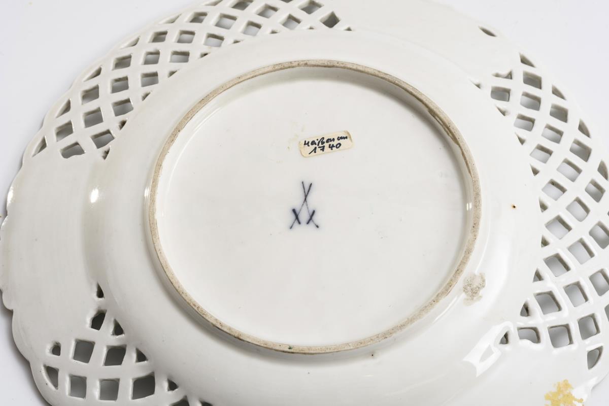 Baroque openwork plate with floral painting. Meissen.