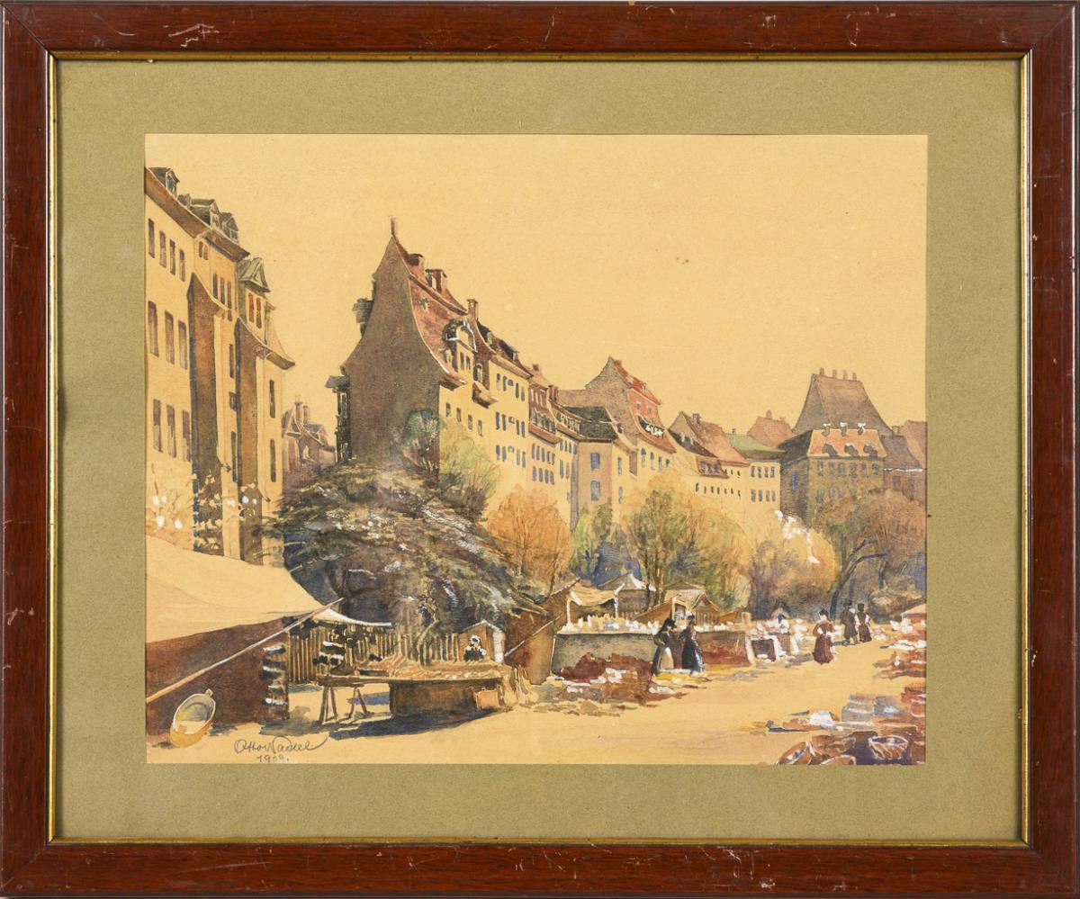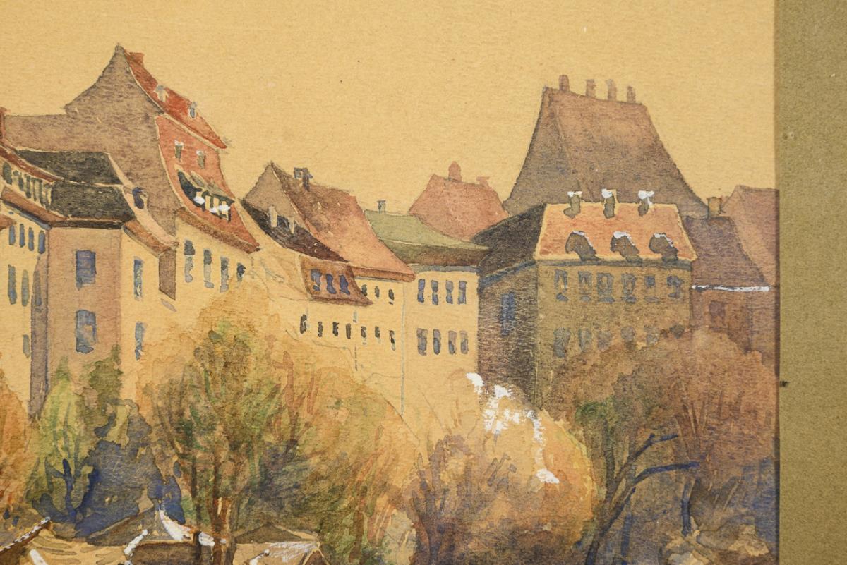 Watercolor, heightened in white. Indistinctly signed lower left. 1909.