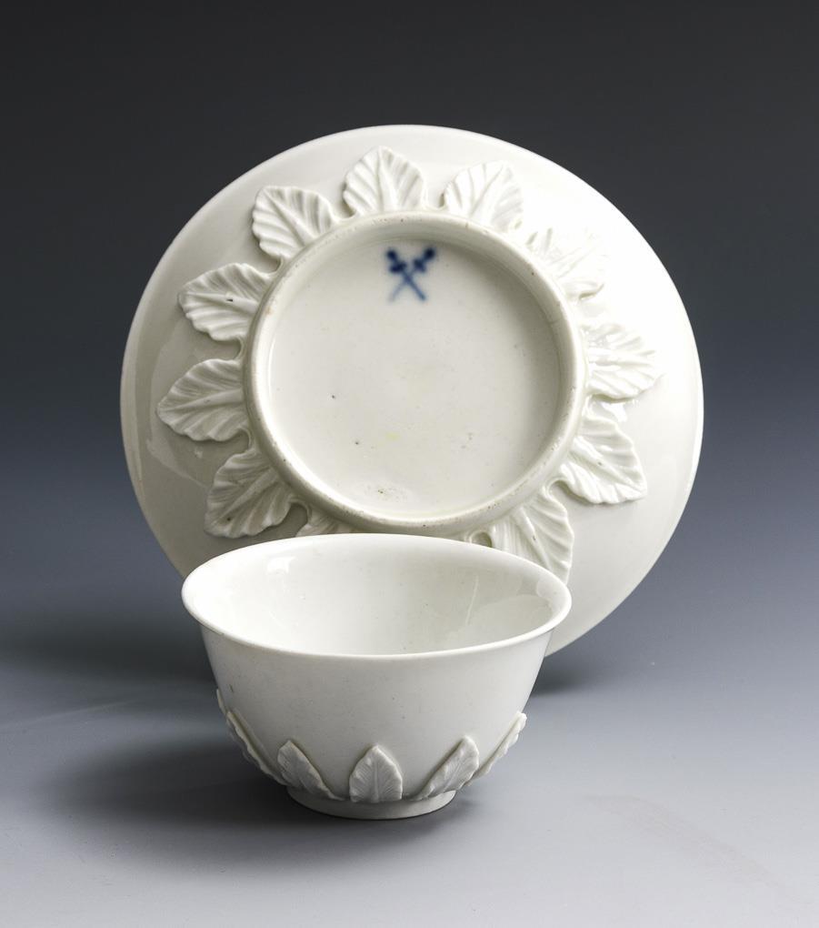 Baroque small bowl with laurel leaf relief. Meissen.